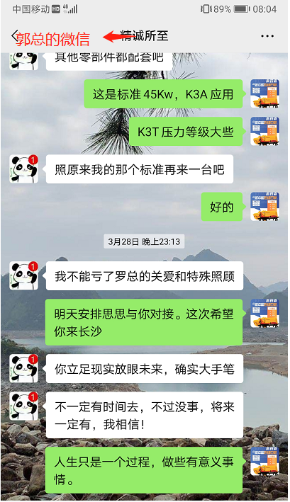 相遇在网络,相识在科玛森;相知相惜无悔信任科玛森!这应该是对郭总跟科玛森之间最好的总结了。2020年六月初,郭总从网络上了解到科玛森,从这时候起郭总就一直在默默的关注科玛森的消息,因为之前被某些地区的低端细石泵祸害的不浅,所以导致一开始郭总并不敢冒然联系科玛森的销售人员,就这样一直观望。