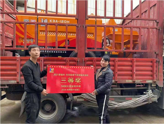 恭喜青海熊总在科玛森新年特惠购机活动中荣获三等奖(现金688元+购机现金抵扣券5000元),喜提科玛森40泵明星升级版K3A-120H一台。